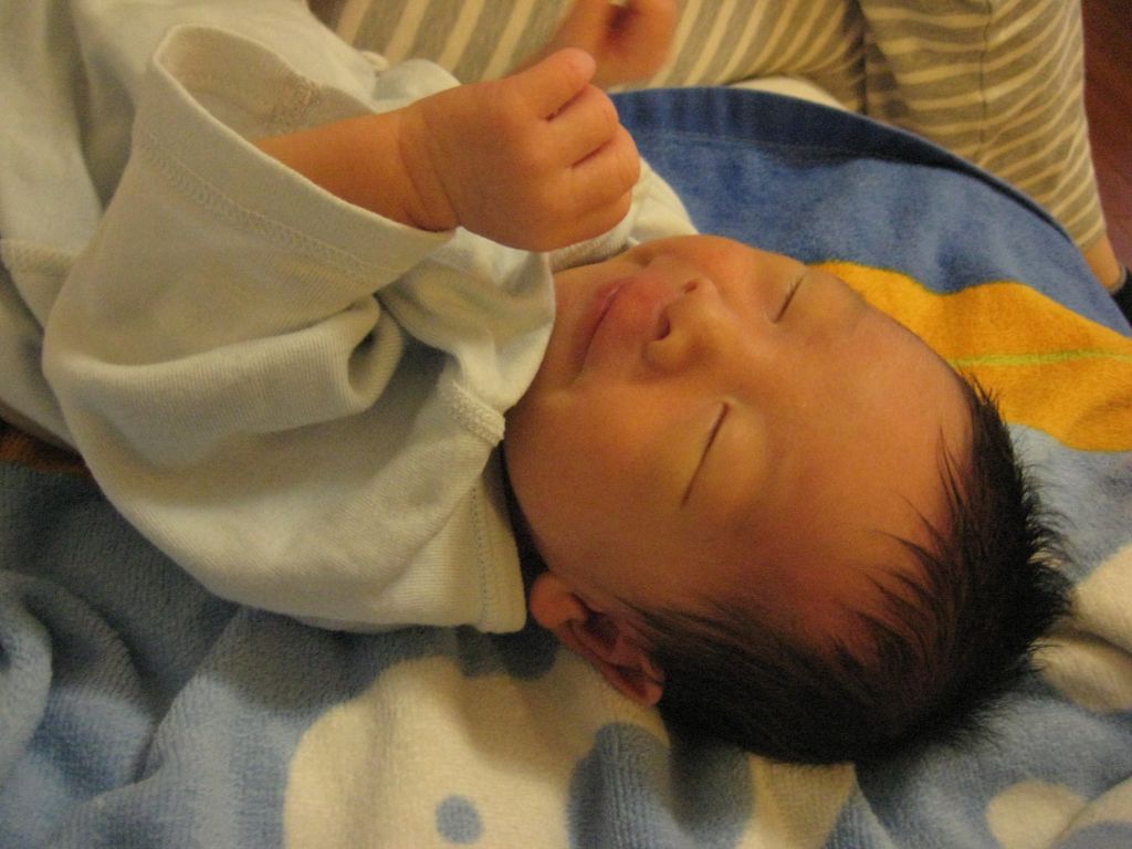 パパに抱かれて手を組んで幸せそうな貫太郎