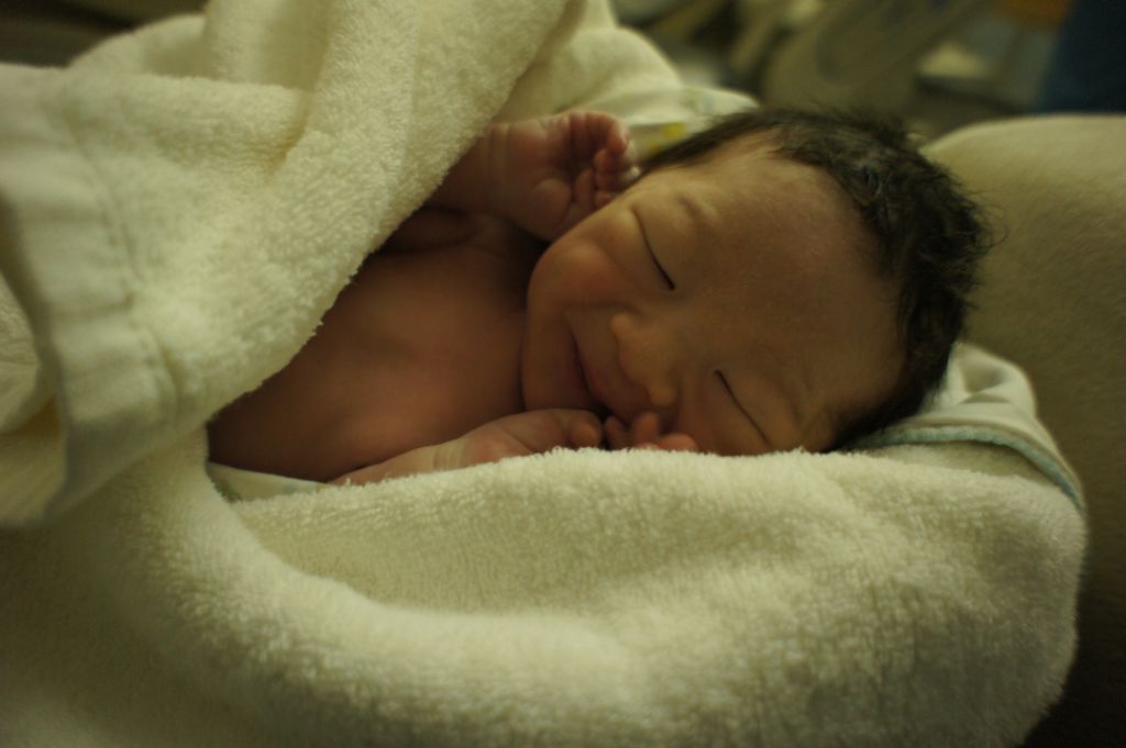 さて、産まれた直後の精一杯の変な笑顔。