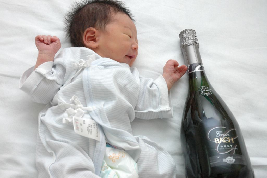 今日は出産のお祝いに病院からシャンパンを頂きました